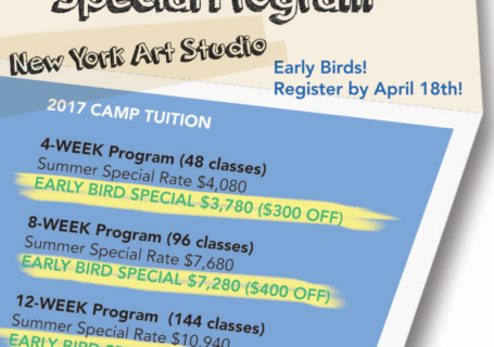 The time has come for you to prepare for your summer! ONLY TWO WEEKS LEFT FOR EARLY REGISTRATION ! NY ARTÂ is announcing Early Bird Special prices for our 2017 Summer Camp! This intensive program is designed to deliver a complete portfolio prep in 12 weeks. With our 1:1 program and expertise, we can guide you […]