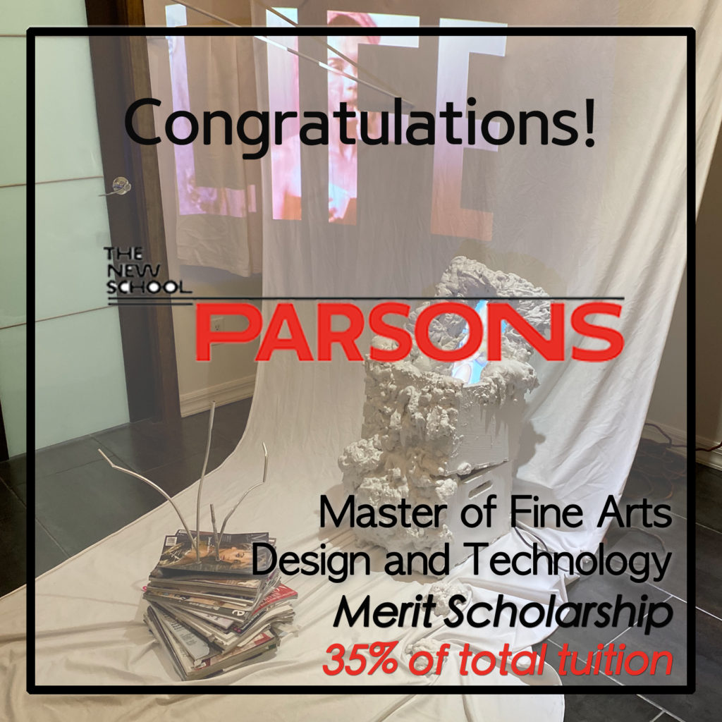 Acceptance to Parsons’ MFA Design and Technology Program with Dean’s Merit Scholarship !!
