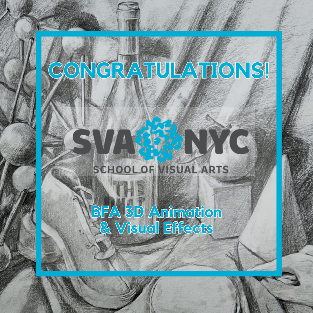 🎊SVA Acceptance: BFA 3D Animation and Visual Effects🎊 Congratulations to another one of our hardworking students! Another great news to share! Our student has been accepted by SVA: School of